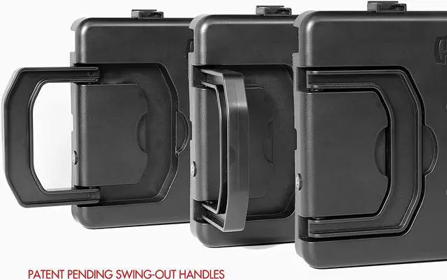 - INTEGRATED SWING-OUT HANDLES provide a firm grip for stability during handheld video recording. The handles can also function as a tabletop stand and fold neatly into the case when not in use.
