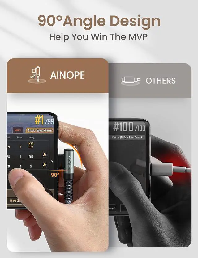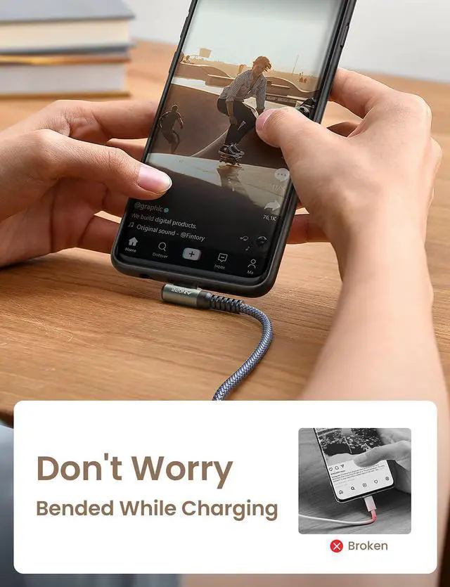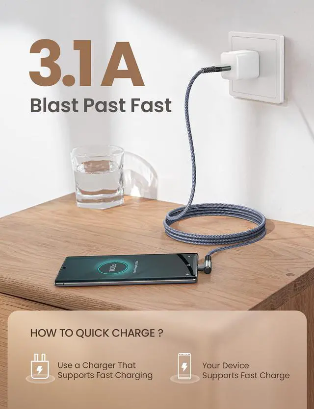 Hands when Charging: When you use this 90-degree right angle elbow USB C Cable to charge your phone you'll find that your fingers can tap the phone so naturally to play games and watch movies without hindrance and your hand can perfectly hold the bottom to scroll the phone screen. 3.1A Fast