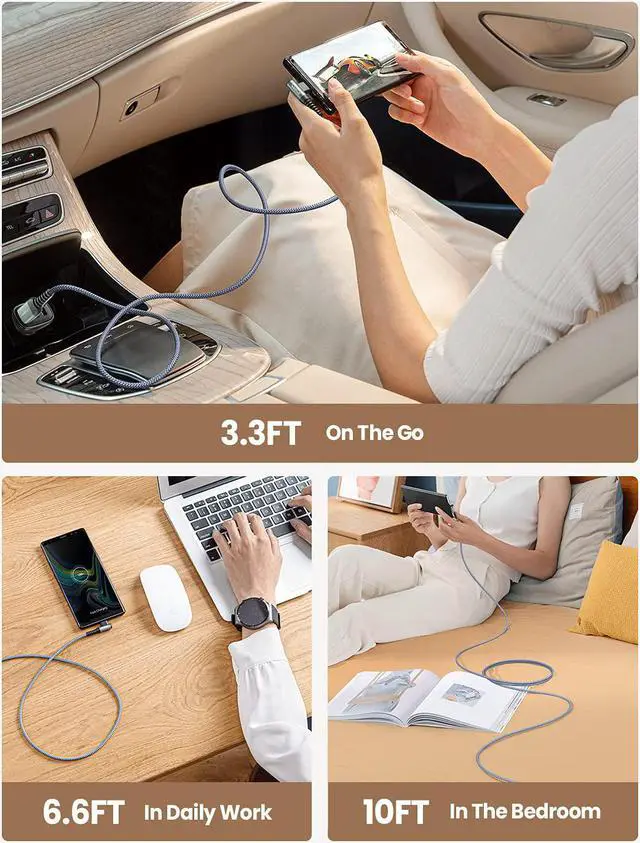 Different length More Convenient: 3.3 ft is suitable for travel 6.6 ft is suitable for offices and 10ft is suitable for families. The combination of different lengths of USB C fast charge meets all the needs of your daily life and makes your life more convenient.
