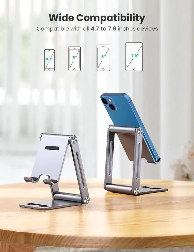 Easy to Carry On-The-Go: With a compact folded size of 4.72 x 3.94 x 3 UGREEN foldable phone stand is portable for travel home and office. Easy to Connect a