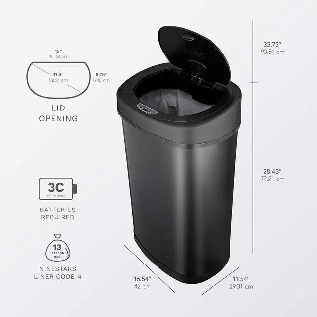 Touch-free Motion Sensor Lid ClouserSeal odor in and eliminate cross-contamination of germs. Requires 3 C batteries (not included), Alkaline battery highly recommended for best performance.