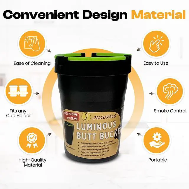[COMPLETE ODOR CONTROL & SMOKELESS] Keep Your Space Fresh Experience a cleaner environment with our advanced smokeless car ashtray. Designed with a tight-sealing lid, this butt bucket effectively traps ash and neutralizes odors instantly. Whether used as a vehicle cup holder ashtray or a portable indoor smokeless tray, it ensures your car, home, or office remains free from lingering smoke smells.