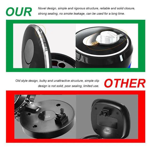 The ashtray features a tight seal design that effectively keeps smoke and odors from escaping when the lid is closed.