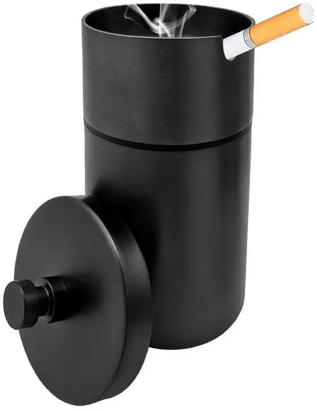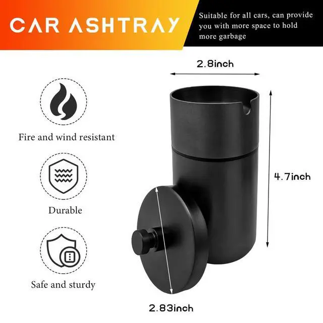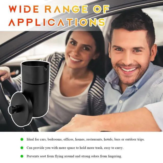 -Self-extinguishing ashtray locks the ashes in the cylinder for safer use, allows you to say goodbye to the lingering strong smell.