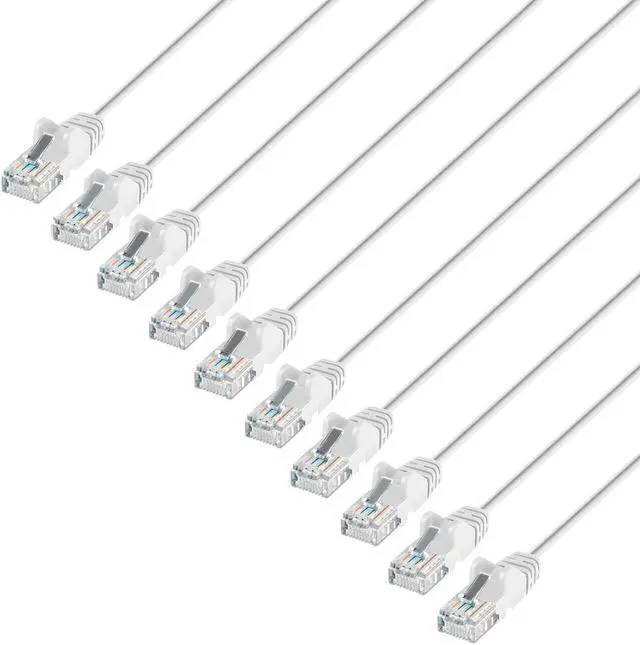 • Strong Thin Size: Its thin slimrun size helps promote better air circulation to equipment in a network cabinet. Also makes it a perfect choice for installation around corners and in tight-space cable runs. | Snag Free Boot: Has snag-free boots to enable smooth and easy cable pulling without damaging the connectors and a rugged PVC jacket to ensure connections remain in place with full data transfer rates. Made with 100% bare copper wire. No shortcuts no compromises and no Aluminum wire. | Fast 10G Data Transfer: RJ45 male connectors have 50 micron gold-plated contacts that allows for Gigabit network speeds and provides superior corrosion resistance. Cat6 with 10G / 1G and 250 MHz. | Compliance Standards Tested: Has all the benefits of a standard Cat 6 LAN network cable cord but with a diameter that's considerably smaller in size. Standards & Certifications are ETL UL ISO/IEC 11801 & EN 50288 & TIA/EIA 568C.2. | Built to Last: Lifetime Manufacturer Warranty