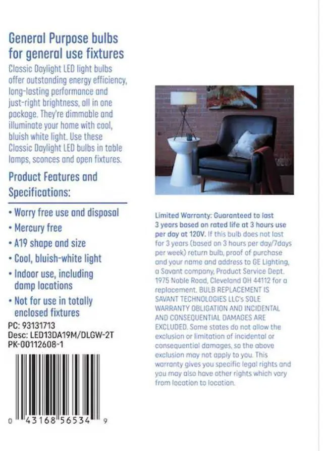 Our LED light bulbs offer outstanding energy efficiency, long-lasting performance and just-right brightness, all in one package. They illuminate your home with daylight. Unlike CFL bulbs, our LED bulbs feature instant full brightness and are free of Mercury. Its great for frequently used fixtures our LED's long life and low energy use will help you save money on energy.