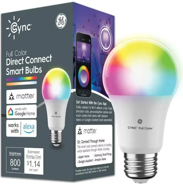 The GE Cync Smart Bulb Color Changing Indoor LED Lights that are Matter compatible make it easy to enhance your room light or to celebrate the holidays. Use millions of colors to decorate for each holiday, create the perfect party vibe, and support your team on game day with each Cync light bulb. Find the right aesthetic décor for your gaming room, improve your LED work light, or use our LED light bulbs as bedroom lights. These indoor light bulbs feature a tunable white spectrum, allowing you to get the perfect hue that highlights your home's landscaping and architecture.