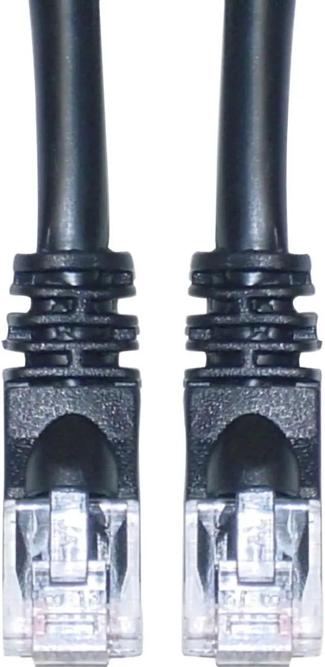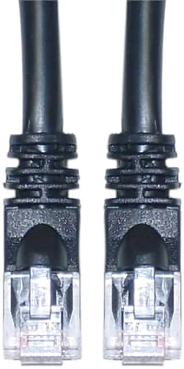 Cat5e Ethernet cables of the 50 foot length have a variety of uses. These cables will provide a greater reach for those situations that require more serious distances. These Ethernet Cables are great for the home office or any other environment. This particular cable is a black UTP (Unshielded Twisted Pair) patch cable with molded boots (snagless installation) and extra protection for the RJ45 connector and clip. The individual conductors are 24 AWG (American wire gauge) stranded pure copper. Cat5e patch cables are stranded to improve flexibility. Pure copper conductors provide the best signal possible. The RJ45 plug features gold connectors to prevent corrosion thus ensuring a longer cable life.