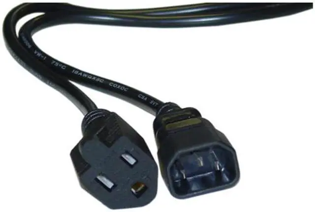 Power Cord Adapter, Black, C14 to NEMA 5 - 15R, 10 Amp, UL / CSA rated, 3 foot, This 3 foot cable / adapter converts a standard Computer / Monitor power cable into a three prong power extension cable. Converts C13 end to a NEMA 5 - 15R end. It is UL / CSA rated and supports up to a 10 amp load.