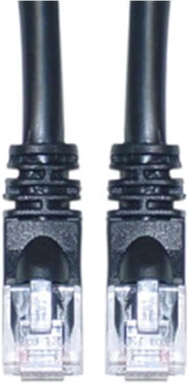 14 foot Cat6 Black Ethernet Patch Cable, Snagless/Molded Boot. Cat6 Ethernet cables of the 14 foot length have a variety of uses. These cables will suffice for connecting routers/switches to Cable/DSL modems, computers to routers/switches, computers to other computers/laptops or even in the server/network room for connecting ports on patch panels. These Ethernet Cables are great for the home office or any other environment. Cat6 cables are used for networking, data transfer, and phone lines. Cat6 Cable is used in network applications and has been designed specifically for Gigabit Ethernet applications. They perform at high-data transfer rates, and work with ATM and gigabit speed products. This particular cable is a black UTP (Unshielded Twisted Pair) patch cable with molded boots (snagless installation) and extra protection for the RJ45 connector and clip. Cat6 cable includes a spline to help ensure separation between the pairs which limits cross talk. The connectors are wired to the T568B standard. The individual conductors are 24 AWG (American wire gauge) stranded pure copper. Cat6 patch cables are stranded to improve flexibility. Pure copper conductors provide the best signal possible. The RJ45 plug features gold connectors to prevent corrosion thus ensuring a longer cable life. Our Cat6 Ethernet patch cables exceed the EIA/TIA-568-C standard.