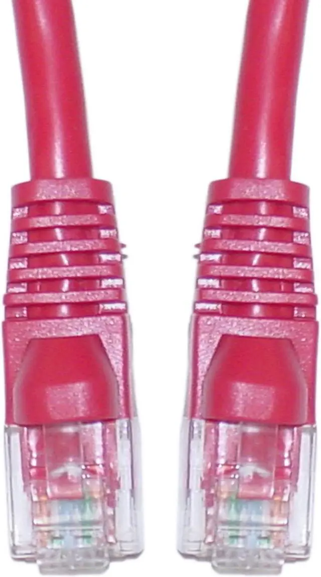 10 foot Cat6 Red Ethernet Patch Cable, Snagless/Molded Boot. Cat6 Ethernet cables of the 10 foot length have a variety of uses. These cables will suffice for connecting routers/switches to Cable/DSL modems, computers to routers/switches or even in the server/network room for connecting ports on patch panels. These Ethernet Cables are great for the home office or any other environment. Cat6 cables are used for networking, data transfer, and phone lines. Cat6 Cable is used in network applications and has been designed specifically for Gigabit Ethernet applications. They perform at high-data transfer rates, and work with ATM and gigabit speed products. This particular cable is a red UTP (Unshielded Twisted Pair) patch cable with molded boots (snagless installation) and extra protection for the RJ45 connector and clip. Cat6 cable includes a spline to help ensure separation between the pairs which limits cross talk. The connectors are wired to the T568B standard. The individual conductors are 24 AWG (American wire gauge) stranded pure copper. Cat6 patch cables are stranded to improve flexibility. Pure copper conductors provide the best signal possible. The RJ45 plug features gold connectors to prevent corrosion thus ensuring a longer cable life. Our Cat6 Ethernet patch cables exceed the EIA/TIA-568-C standard.