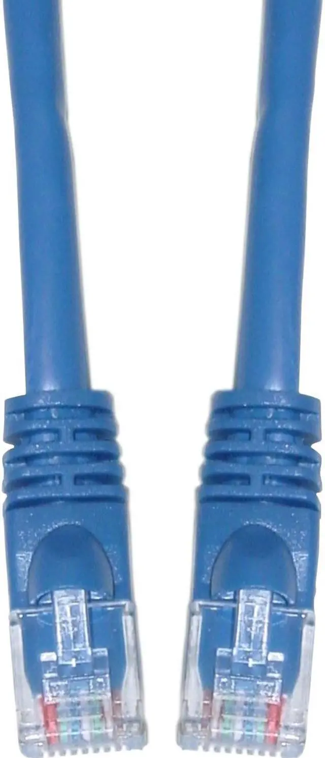 14 foot Cat6 Blue Ethernet Patch Cable, Snagless/Molded Boot. Cat6 Ethernet cables of the 14 foot length have a variety of uses. These cables will suffice for connecting routers/switches to Cable/DSL modems, computers to routers/switches, computers to other computers/laptops or even in the server/network room for connecting ports on patch panels. These Ethernet Cables are great for the home office or any other environment. Cat6 cables are used for networking, data transfer, and phone lines. Cat6 Cable is used in network applications and has been designed specifically for Gigabit Ethernet applications. They perform at high-data transfer rates, and work with ATM and gigabit speed products. This particular cable is a blue UTP (Unshielded Twisted Pair) patch cable with molded boots (snagless installation) and extra protection for the RJ45 connector and clip. Cat6 cable includes a spline to help ensure separation between the pairs which limits cross talk. The connectors are wired to the T568B standard. The individual conductors are 24 AWG (American wire gauge) stranded pure copper. Cat6 patch cables are stranded to improve flexibility. Pure copper conductors provide the best signal possible. The RJ45 plug features gold connectors to prevent corrosion thus ensuring a longer cable life. Our Cat6 Ethernet patch cables exceed the EIA/TIA-568-C standard.