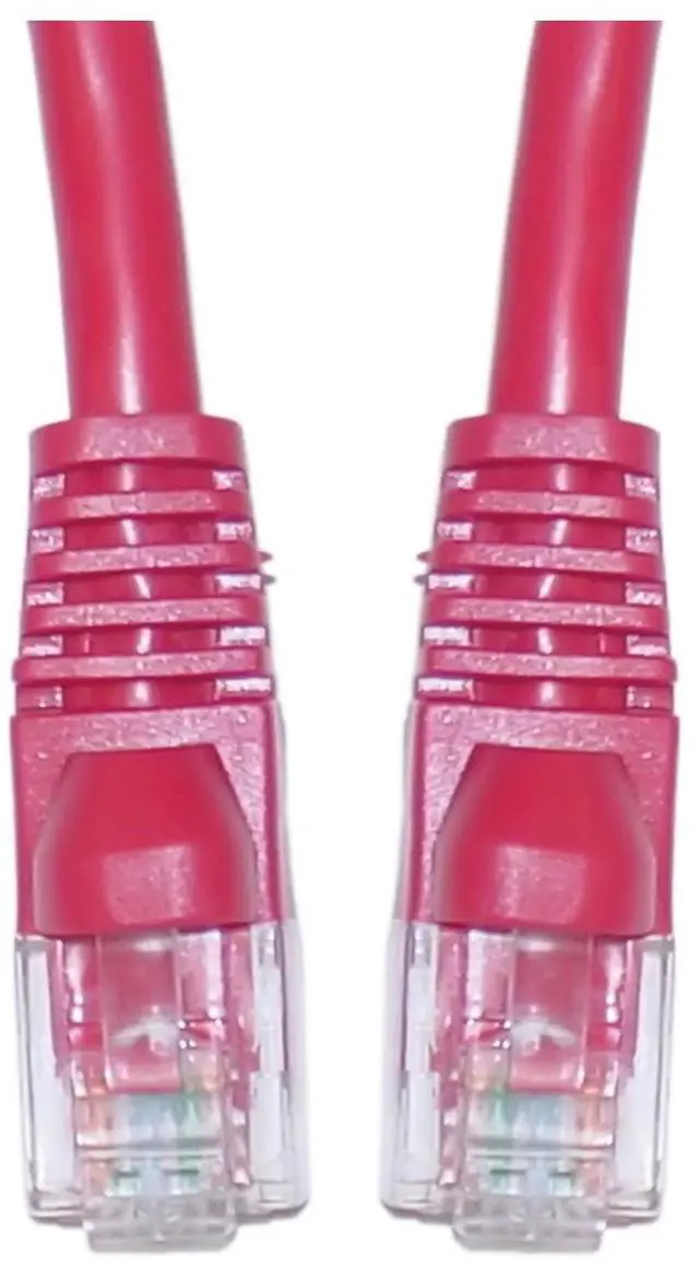 20 foot Cat5e Red Ethernet Network Patch Cable, Snagless/Molded Boot. Cat5e Ethernet cables of the 20 foot length have a variety of uses. These cables will provide a greater reach for those situations that require more serious distances. These Ethernet Cables are great for the home office or any other environment. This particular cable is a red UTP (Unshielded Twisted Pair) patch cable with molded boots (snagless installation) and extra protection for the RJ45 connector and clip. The connectors are wired to the T568B standard. The individual conductors are 24 AWG (American wire gauge) stranded pure copper. Cat5e patch cables are stranded to improve flexibility. Pure copper conductors provide the best signal possible. The RJ45 plug features gold connectors to prevent corrosion thus ensuring a longer cable life. Our Cat5e Ethernet patch cables exceed the EIA/TIA-568-C standard. End 1: CAT5E Male Plug. End 2: CAT5E Male Plug. Length: 20 feet. Color: Red. Wire: 24 AWG. Weight: 0.45 lbs.