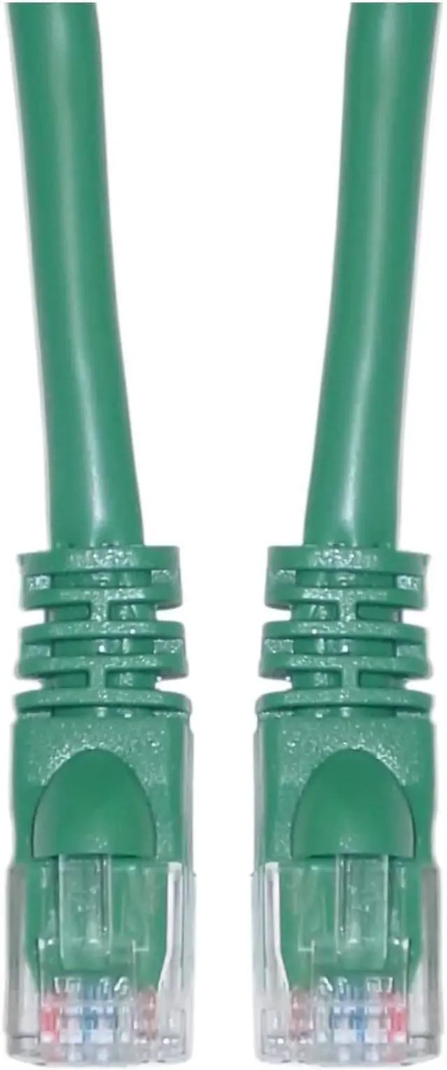 4 foot Cat5e Green Ethernet Network Patch Cable, Snagless/Molded Boot. Cat5e Ethernet cables of the 4 foot length are typically used to connect a Cable or DSL modem to a router/switch in the home or office or for particularly long patch panel runs inside server/network rooms. Though you may find many uses for such a length. This particular cable is a green UTP (Unshielded Twisted Pair) patch cable with molded boots (snagless installation) and extra protection for the RJ45 connector and clip. The individual conductors are 24 AWG (American wire gauge) stranded pure copper. Cat5e patch cables are stranded to improve flexibility. Pure copper conductors provide the best signal possible. The RJ45 plug features gold connectors to prevent corrosion thus ensuring a longer cable life. Our Cat5e Ethernet patch cables exceed the EIA/TIA-568-C standard. End 1: CAT5E Male Plug. End 2: CAT5E Male Plug. Length: 4 feet. Color: Green. Wire: 24 AWG. Weight: 0.11 lbs.