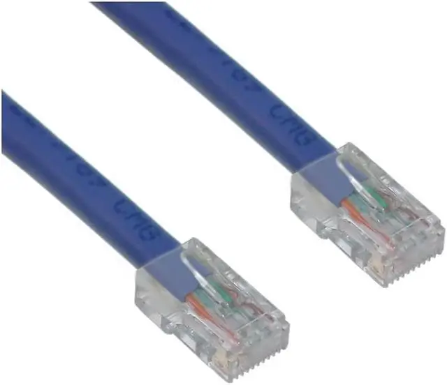 Cat5e Ethernet cables of the 6 foot length have a variety of uses. These cables will suffice for connecting routers/switches to Cable/DSL modems, computers to routers/switches or even in the server/network room for connecting ports on patch panels. These Ethernet Cables are great for the home office or any other environment.This particular cable is a blue UTP (Unshielded Twisted Pair) bootless patch cable. The connectors are wired to the T568B standard. The individual conductors are 24 AWG (American wire gauge) stranded pure copper. Cat5e patch cables are stranded to improve flexibility. Pure copper conductors provide the best signal possible. The RJ45 plug features gold connectors to prevent corrosion thus ensuring a longer cable life. Our Cat5e Ethernet patch cables exceed the EIA/TIA-568-C standard.