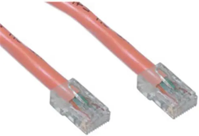 This particular cable is a orange UTP (Unshielded Twisted Pair) bootless patch cable. The connectors are wired to the T568B standard. The individual conductors are 24 AWG (American wire gauge) stranded pure copper. Cat5e patch cables are stranded to improve flexibility. Pure copper conductors provide the best signal possible. The RJ45 plug features gold connectors to prevent corrosion thus ensuring a longer cable life. Our Cat5e Ethernet patch cable exceed the EIA/TIA-568-C standard.
