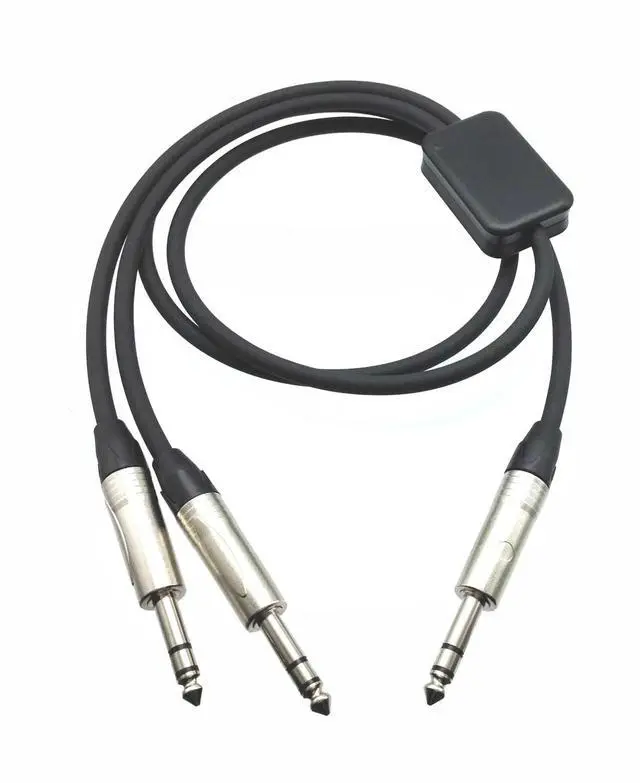 CABLE FORMAT: 3 conductor TRS (male) to 3 conductor (2) TRS (male) connectors.