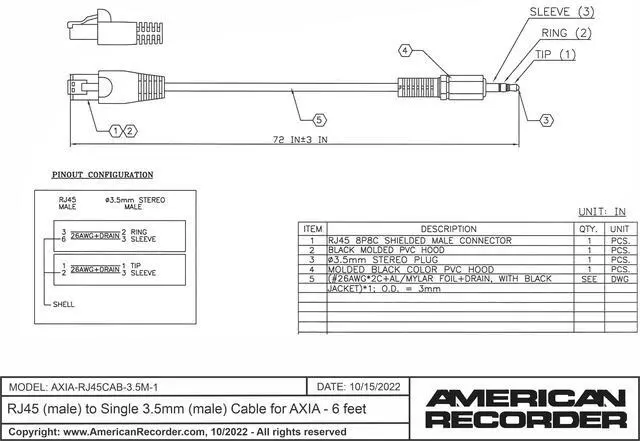 This is a passive cable which features a male RJ45 to single 3.5mm male connector.