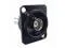 This panel-mounted D-type connector features a 50 ohm BNC female interface with a nickel bezel. It offers a pass-through configuration, including a female BNC connection on the rear side.