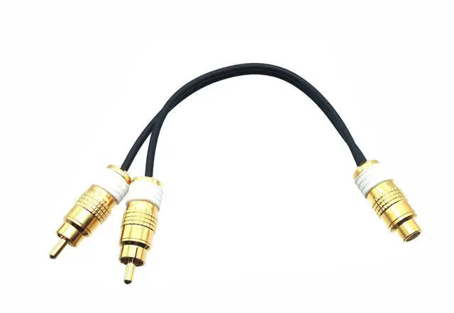 Hand-built RCA Y Cable ideal for sharing an audio signal with two devices. Cable uses our heavy duty gold plated RCA Connectors and flexible audio cable. 6" length.