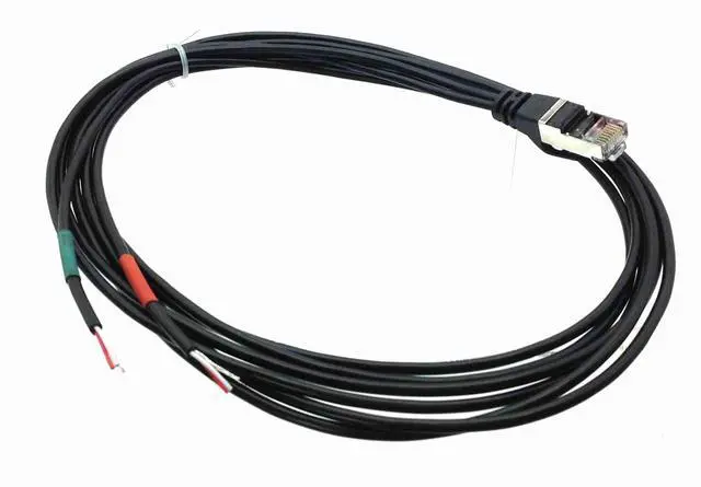This is a passive cable which features a male RJ45 to bare ends for custom configuration.