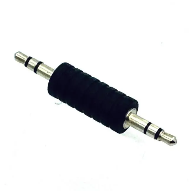 3.5mm TRS (male) to 3.5mm TRS (male) Adapter with an insulated plastic mold barrel. Nickel plated contacts.