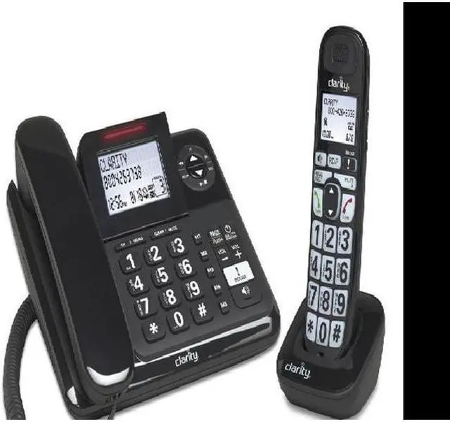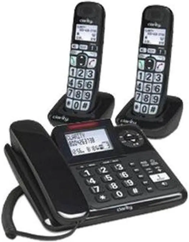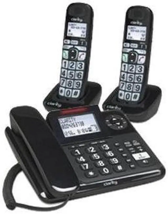 CLARITY E814CC2 54010.001 E814CC + D703HSAmplifies incoming sound up to 40 decibelsFour tone settings to customize your listening experienceAmplified digital answering machine making it easier to listen to messagesLarge high contrast CID displayExtra loud and clear speakerphone for handsfree conversationsLarge keypad with high contrast numbersFive speed dial buttons to store important numbersTen loud ringer melodies with six levels of volumeCID display lights up as super bright visual ringerExpandable up to four cordles handsets (model # D703HS)