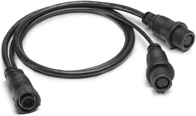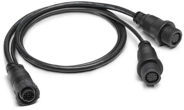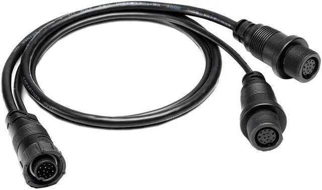 The 14 M ID SIDB Y cable allows for the installation of a separate 2D transducer paired with a Humminbird MEGA Imaging or non-MEGA Imaging transducer and connect both transducers to a single Humminbird control head. This y-cable provides the ability to install a separate high-speed Humminbird 2D transducer for high-speed depth reading and sonar performance. Alternatively, this cable can also be used to add an accessory Airmar® 2D transducer to a Humminbird control head that also has a Side or Down Imaging transducer connected at the same time. This cable supports Transducer ID for automatic recognition and easy setup of Airmar® accessory transducers.