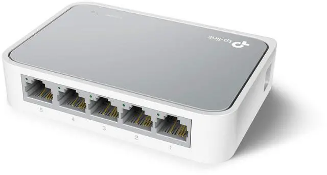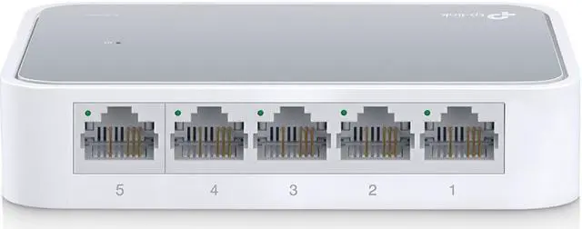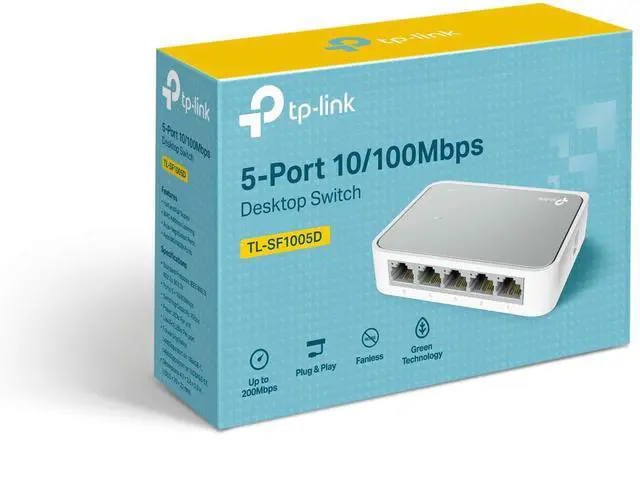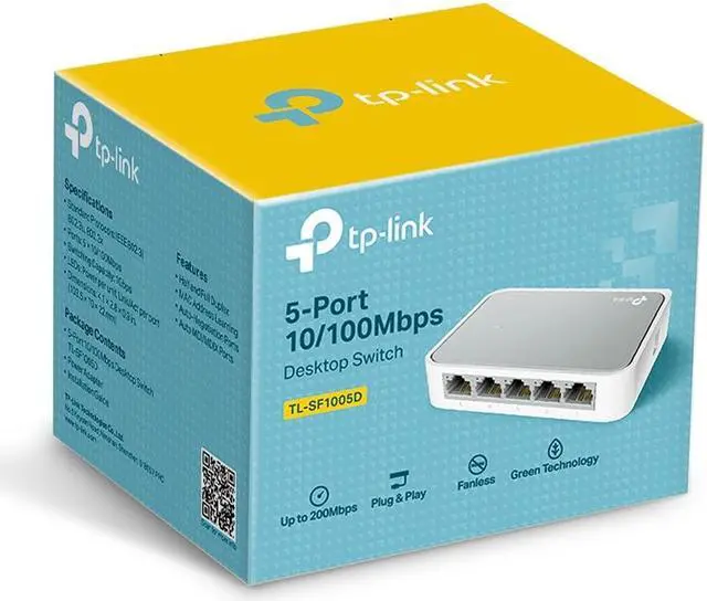 The TL-SF1005D 5-Port 10/100Mbps desktop switch provides an easy way to expand your wired network. All 5 ports support auto-MDI/MDIX, eliminating the need to worry about the type of cable to use. Featuring full duplex mode, the TL-SF1005D can process data at a rate of up to 200Mbps making it an ideal choice for expanding your high performance wired network. Moreover, with innovative energy-efficient technology, the TL-SF1005D can save power consumption, making it an eco-friendly solution for your home or office network.
