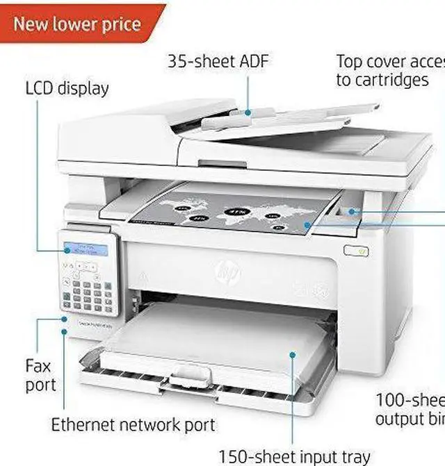 Brand: HPColor: N/AFeatures: Print up to 23 ppm black; First Page Out As fast as 7.3 sec; Print Resolution is up to 600 x 600 dpi; HP FastRes 1200 (1200 dpi quality)Scan Resolution is up to 300 x 300 dpi (color and mono ADF); Up to 600 x 600 dpi (color flatbed); Up to 1200 x 1200 dpi (mono flatbed); Optical: Up to 300 dpi (color and mono ADF)Copy Speed Black is 23 ppm; Copy Resolution Black (text and graphics) 600 x 400 dpi; 600 x 400 dpiHi-Speed USB 2.0 port (device); built-in Fast Ethernet 10/100Base-TX network port; Phone line port (in/out)150-sheet input tray 100-sheet output trayOperating System: Windows; MacPublisher: hpWarranty: One year limited warrantyDetails: keep Things Simple With Hp''s Smallest Laserjet Mfp-powered By Jetintelligence Toner Cartridges. Print Professional Documents From A Range Of Mobile Devices Plus Scan Copy Fax And Help Save Energy With An Mfp Designed For Efficiency.features Designed For Efficiency Print Scan Copy And Fax With Hp''s Smallest Laserjet Mfp-designed To Fit Into Tight Workspaces. Wait Less. Print Up To 23 Pages Per Minute With First Pages Ready In As Fast As 7.3 Seconds. Help Save Energy With Hp Auto-on/auto-off Technology. Quickly Capture Two-sided Documents In Fewer Steps. Mobile Printing Made Simple Print From Iphone And Ipad With Airprint Which Automatically Scales Jobs To The Correct Paper Size. Print With The Ease Of Sending An Email Right From A Smartphone Tablet Or Notebook Using Hp Eprint. Send Jobs From Your Smartphone Tablet Or Pc To Any Company Printer Using Google Cloud Print 2.0. Hp Quality-print After Print Produce Sharp Text Bold Blacks And Crisp Graphics With Precision Black Toner. Don''t Be Fooled By Alternatives That Mimic Original Hp. Help Ensure You''re Getting The Quality You Paid For. Track Toner Levels With Print Gauge Technology. Produce The Most Prints Possible And Get What You Paid For. No Delays Or Mess-quickly Replace Your Cartridges Using Auto Seal Removal And Easy-open Packaging.UPC: 725184117213EAN: 0779184024606