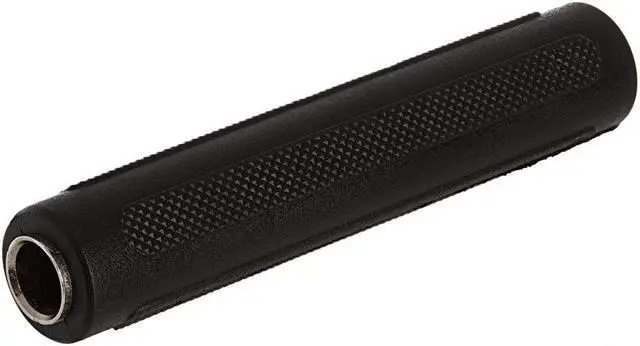6.35mm Mono Jack to 6.35mm Mono Jack Adapter connects two 6.35mm Mono Plugs. The adapter is assambled of black molded plastic with nickel-plated contacts.