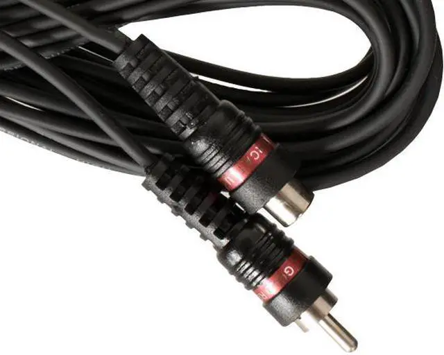 Each cable has a male RCA connection on one end and a female RCA connection on the other end