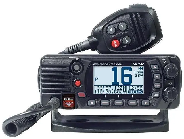 Features: id="isPasted">Affordable Ultra Compact Class D Fixed Mount VHF RadioMeets the latest Standards for ITU-R M493-16 Class D DSCReplaces older Eclipse+ and Eclipse DSC ModelsRadio controls on the MicrophoneE2O Easy to Operate Icon/Menu SystemOversized Full dot matrix display (31 mm x 55 mm) Built-in Separate Receiver for CH70 (Receiving DSC Calls) DSC test call and Auto DSC channel change selectionGPS position and Time Shown on a Full-dot Matrix Display when Connected to a GPS ReceiverNMEA0183 In and Output Connections to a Compatible GPS Chart PlotterProgrammable soft keysAutomatically poll the GPS position of up to 6 ships using DSCSubmersible IPX8 waterproof rating ( 1.5M or 4.92 feet for 30 minutes)All USA/International and Canadian Marine ChannelsPreset key used to recall up to 10 favorite channelsNOAA weather channel selection with Weather AlertProgrammable Scan, Priority Scan, and Dual Watch