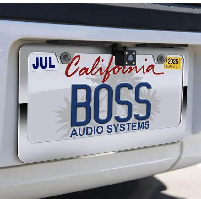 BOSS Audio Systems ELPC40B Rearview Car Backup Camera - License Plate Mount High Resolution Color Easy Mount 170 Wide Angle View Weatherproof Low Light Visibility On-screen Distance Guide