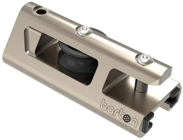 id="isPasted">32mm End Stop & Becket Genoa Car TrackBarton Marine' s sleek range of Genoa is designed to run on 32mm (1 ¼ ” ) T Track. All are manufactured from high-grade aluminum with our unique Spectro anodized finish for superior protection in marine environments. A black anodized finish is also available. Designed over 18 months to meet the requirements of OEMs, riggers, and sailing enthusiasts who want high performance and longevity captured in contemporary design. The new range is a class above the norm and features molded nylon inserts to prevent damage to the low-friction anodized finish and ensure smooth running in all marine environments.