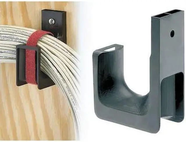 J-Hook, Mounting Location Wall, Color Black, Max. Load Capacity 200 lb, Max. Bundle Dia. 4 in, Material Nylon 6/6, Screw On, Mounting Hole Dia. 1/4 in, Includes Locking Latch No, Description/Special Features Bend Radius Control, Smooth Pulling Surface, Standards TIA/EIA 569 Compliant, UL 2043, Package Quantity 10