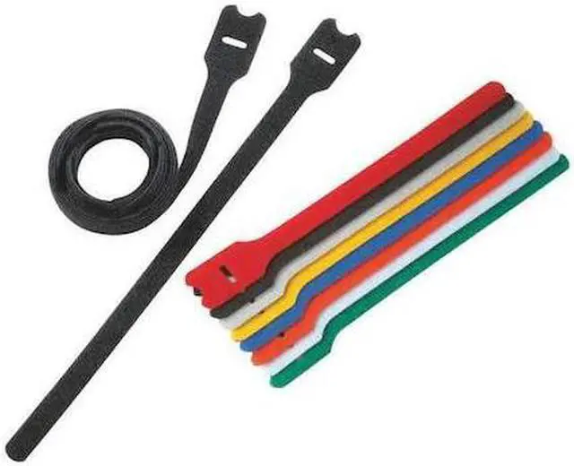 Adjustable Cable Tiesare releasable and reusable, which makes them great for applications requiring frequent moves, adds, or changes. Their hook-and-loop fasteners protect against overtensioning. Min. 2" overlap is required to achieve loop tensile rating. Hook/Loop Ties, Wrap, 40 lb, 0.50"W, PK10