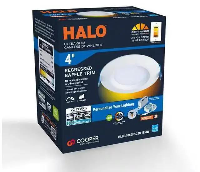 The HALO HLBC is a slim LED downlight designed with visual comfort in mind. It features a regressed prismatic lens for superior glare reduction, while maintaining an ultra-thin 1/2 in. fixture thickness above the ceiling plane. This means the HALO HLBC can be installed virtually anywhere, regardless of plenum space. The HLBC is perfect for new construction, remodel, or retrofit jobs. During installation, select the perfect color temperature for your space with 5-color temperatures between warm (2700K) to daylight (5000K) or dim-to-warm option. The dim-to-warm setting begins at 3000K and dims smoothly to 1800K, creating a rich, warm glow resembling candlelight or the sun on the horizon. The HALO HLBC is an ideal solution for residential and light commercial applications where visual comfort and installation flexibility are a priority.