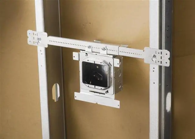 Box Mounting Bracket, Adjustable, Mounts One or More 1 1/2 or 2 1/8 In Deep Boxes Between Wood or Metal Studs, Can be Mounted on Face or Inside of Stud, Length 11 to 18 In, Color Silver, Material of Construction Steel. This item has been restricted from sale in the following state (s): []