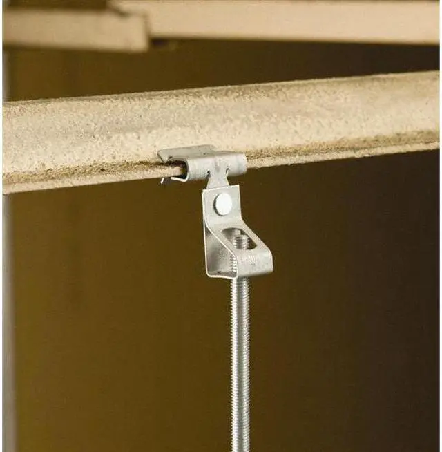 Rod Hanger, Flange Thickness 1/8 in to 1/4 in, Load Capacity 200 lb, Thread Size 3/8 In. -16, Steel, Finish Corrosion Resistant Coated, Gray, Mounting Hole Diameter 0.375 in, Mounting Type Hammer On, cULus, Conduit and Cable Hangers. This item has been restricted from sale in the following state (s): []