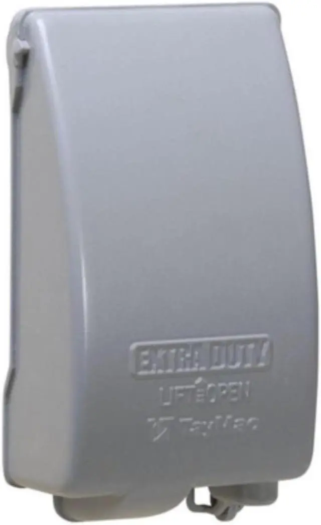 While In Use Weatherproof Cover, Body Material Die-Cast Metal, Mounting Orientation Vertical, Receptacle Type GFCI, Depth 2 1/4 in, Number of Gangs 1, Width 3 1/2 in, Height 6 in, Features Low Profile, Gasket Material Polyethylene Foam, Color Gray, Standards NEC, UL Listed, Includes Adapter, Gasket, Mounting Hardware. This item has been restricted from sale in the following state (s): []