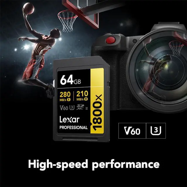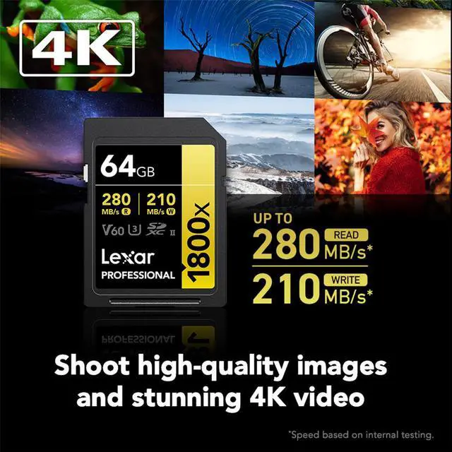 Item Weight: 5.6 ounces Professional-level performance to meet your needsDesigned for your DSLR or mirrorless cameras, the Lexar Professional 1800x SDXc UHS-II card gOLD Series lets you quickly capture and transfer high-quality photos and stunning Full-HD and 4K video with speeds up to 270MB s read. With the latest UHS-II technology and Video Speed class 60 (V60) rating, this card dramatically accelerates your workflow from start to finish. Speed up your workflow from the field to post-production. Lexar Professional 1800x SDXc UHS-II card gOLD Series offers super-fast read speeds up to 270MB s to accelerate your post-production workflow - saving you time and getting you back to the business of photography. V60 rated to capture smooth Full-HD and 4K video. With the latest UHS-II technology and write speeds up to 180MB s, the Lexar Professional 1800x SDXc UHS-II card gOLD Series allows you to handle photos in burst mode with ease. And, with V60 and UHS Speed class 3 (U3), seamlessly capture stunning Full-HD and 4K video with large capacity of 64gB. Designed for durability. These cards provide the performance you need to capture and store valuable data in a variety of elements.