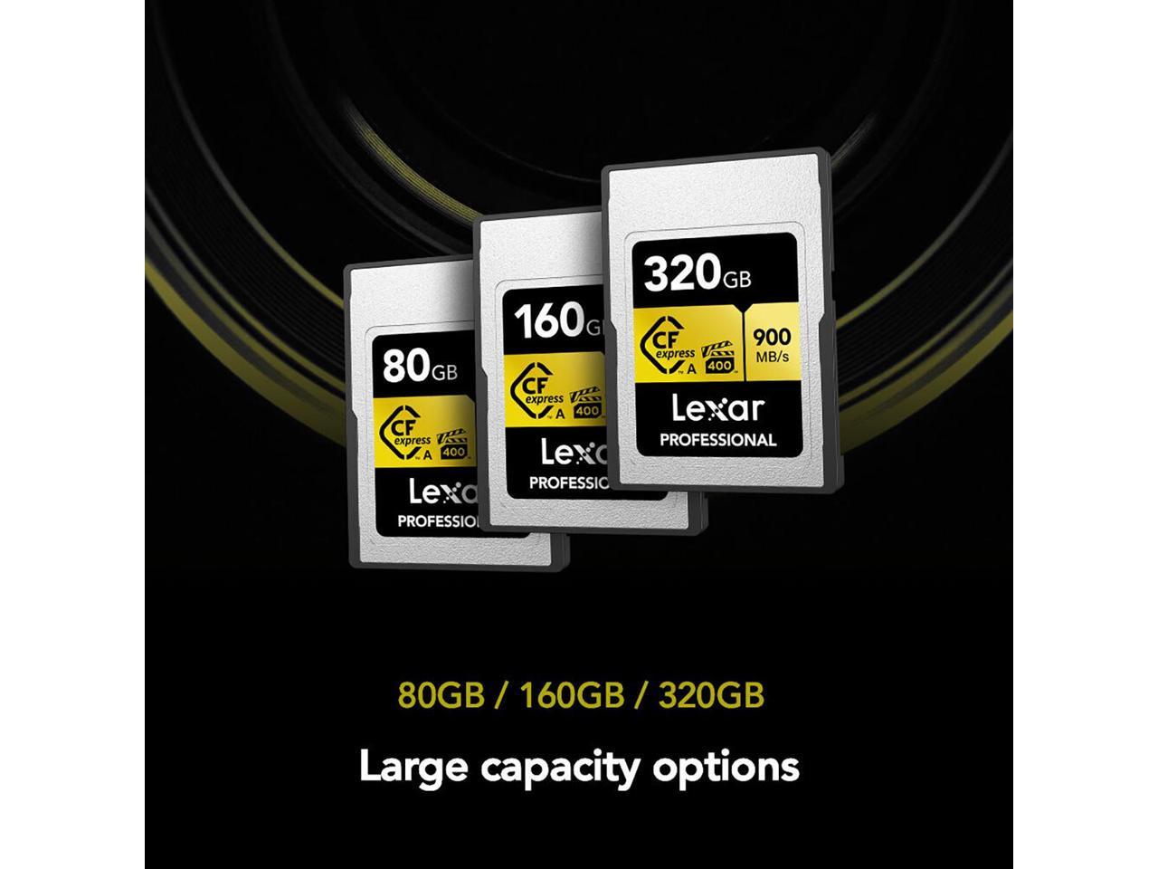 Lexar 320GB Professional CFexpress Type A GOLD Series Memory Card Up to 900MB/s Read Cinema-quality 8K Video Rated VPG 400 (LCAGOLD320G-RNENG)