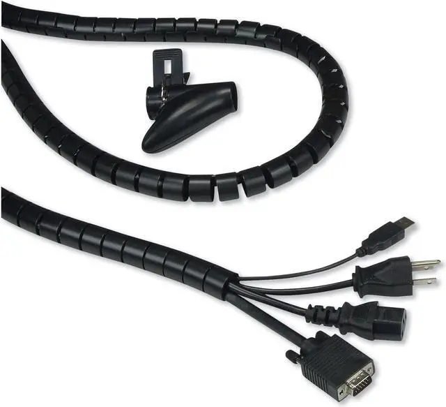 Cable Management Coiled Tube, 0.75" Dia X 77.5" Long, BlackThe cable management sleeve can be easily cut to custom lengths or joined to additional units for extra length. Non-permanent and reusable.