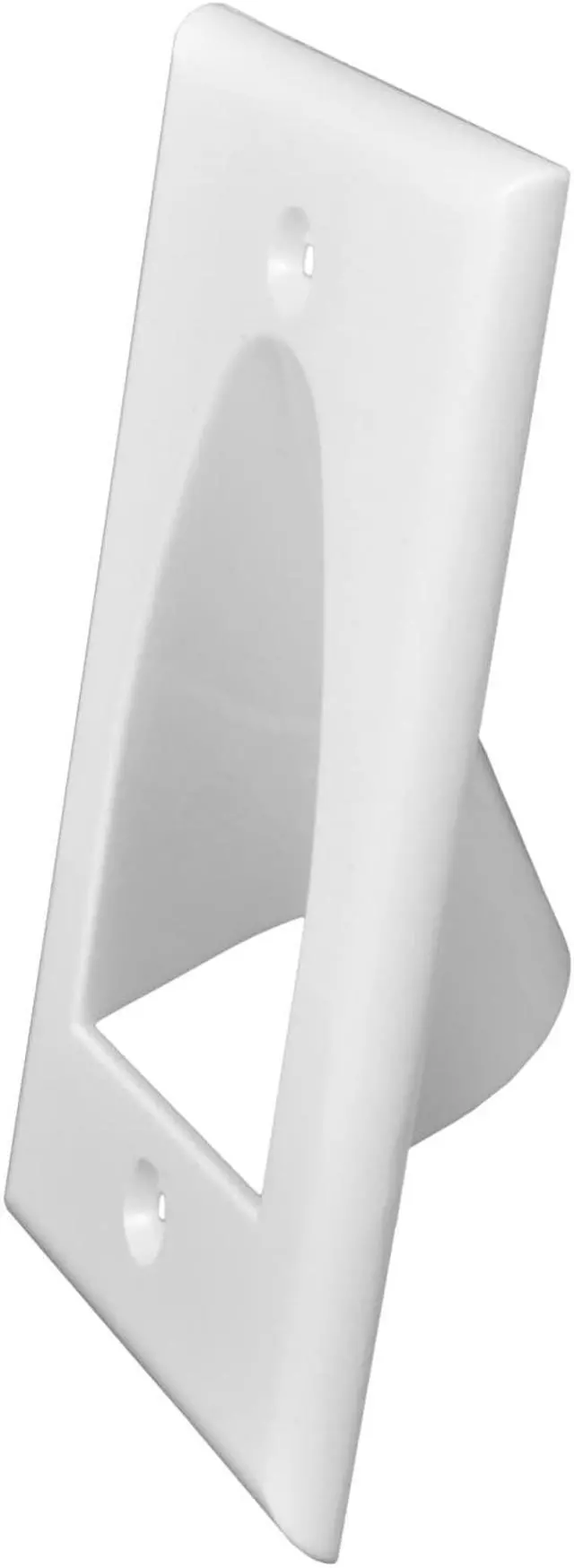 Provides a solution for organizing low voltage cables inside walls. This White wall plate covers a standard single gang opening and is designed to be installed facing up or down, onto a low-voltage mounting bracket facing up or down.