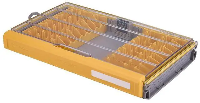 Dimensions: 14” L x 9” W x 1.88 ” HStore and protect up to 20 individual jerkbaitsDri-Loc O-ring watertight sealWaterwick dividerEZ Label systemDuraView crystal-clear polycarbonate lidRustrictor rust prevention technologySteel pin hingesOne-hand latch