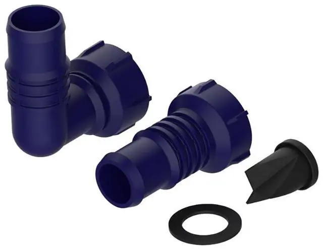 Diameter: 1" (25mm) & 1-1/8" (28mm) Compatible with Tsunami Bilge Mk2Kit includes (1 each): 90-degree outletStraight outletWasherNon-return/check valve