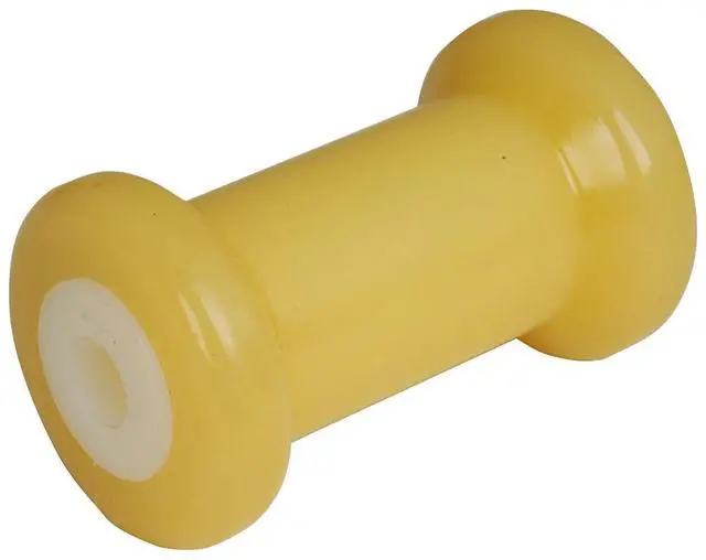Spool Roller 5" - 5/8" ID - Gold TPR with Bushing White SolidFeatures: Fits standard brackets and shaft sizesNatural rubber2-7/8" Diameter4-7/8" WidthGold TPR5/8" Shaft