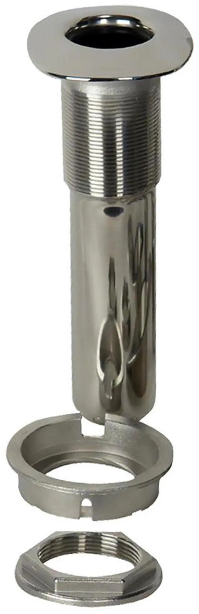 Features: 316L stainless steelFits 2-3/16 in. hole diameterCast models feature a ½ in. drain holeNo logo on the cap for a sleek low profileThe liner runs the full length of the tubeIncludes a backing plate and installation nutInstallation requires Model # 53679