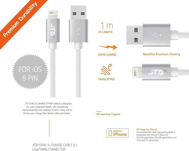 JTD 3ft Nylon Braided USB Cable with Lightning Connector